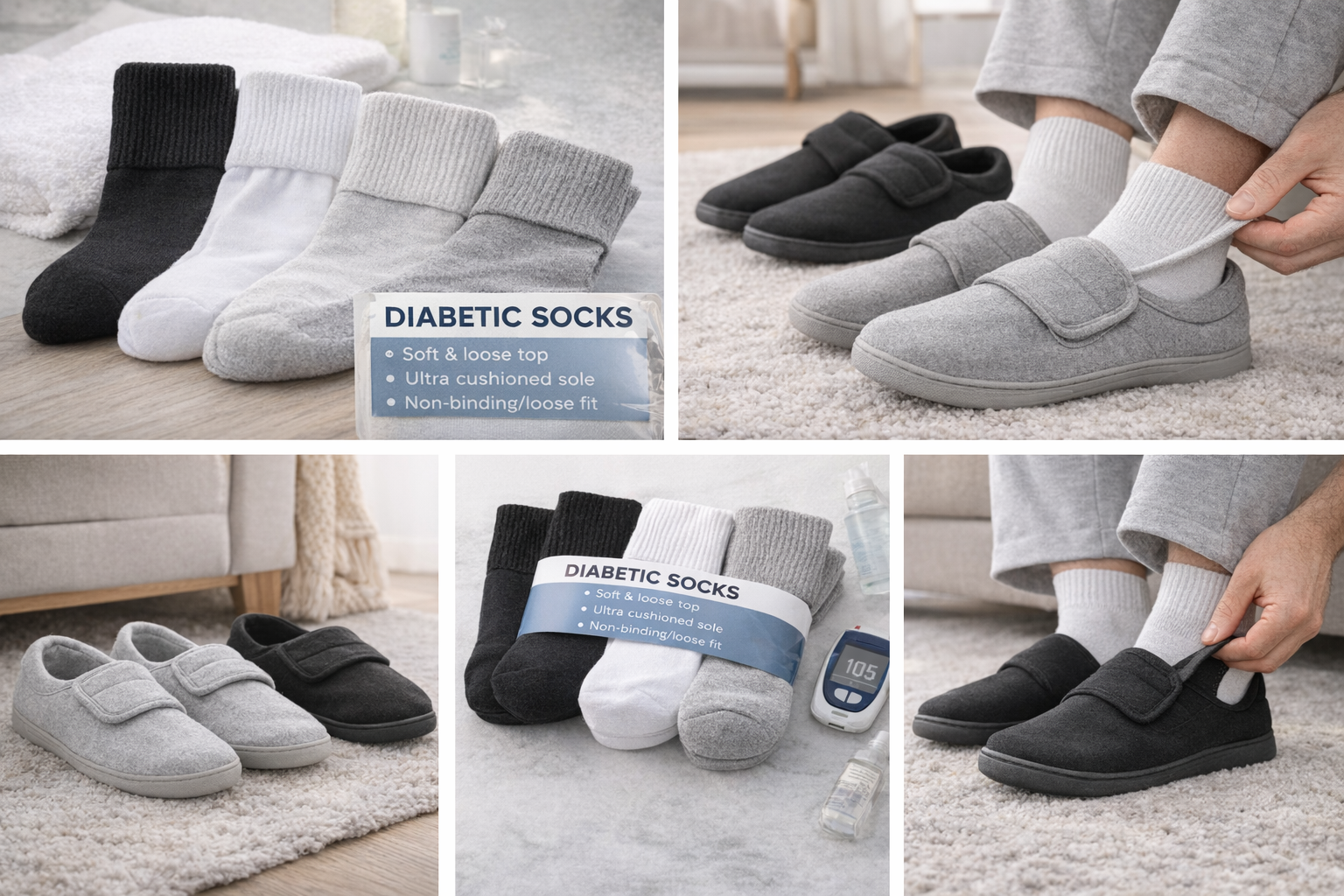 Soft, non-binding socks and supportive comfort wear made to reduce pressure and improve circulation. Perfect for all-day comfort, protection, and foot care.
