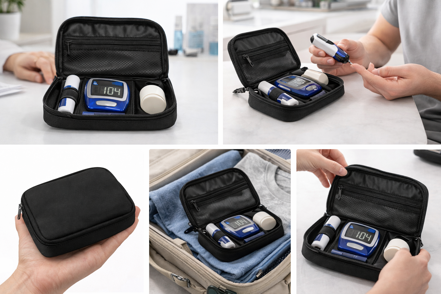 Store and carry your glucose meter, test strips, lancets, and accessories safely in one compact, travel-friendly case. Designed for daily use at home or on the go.